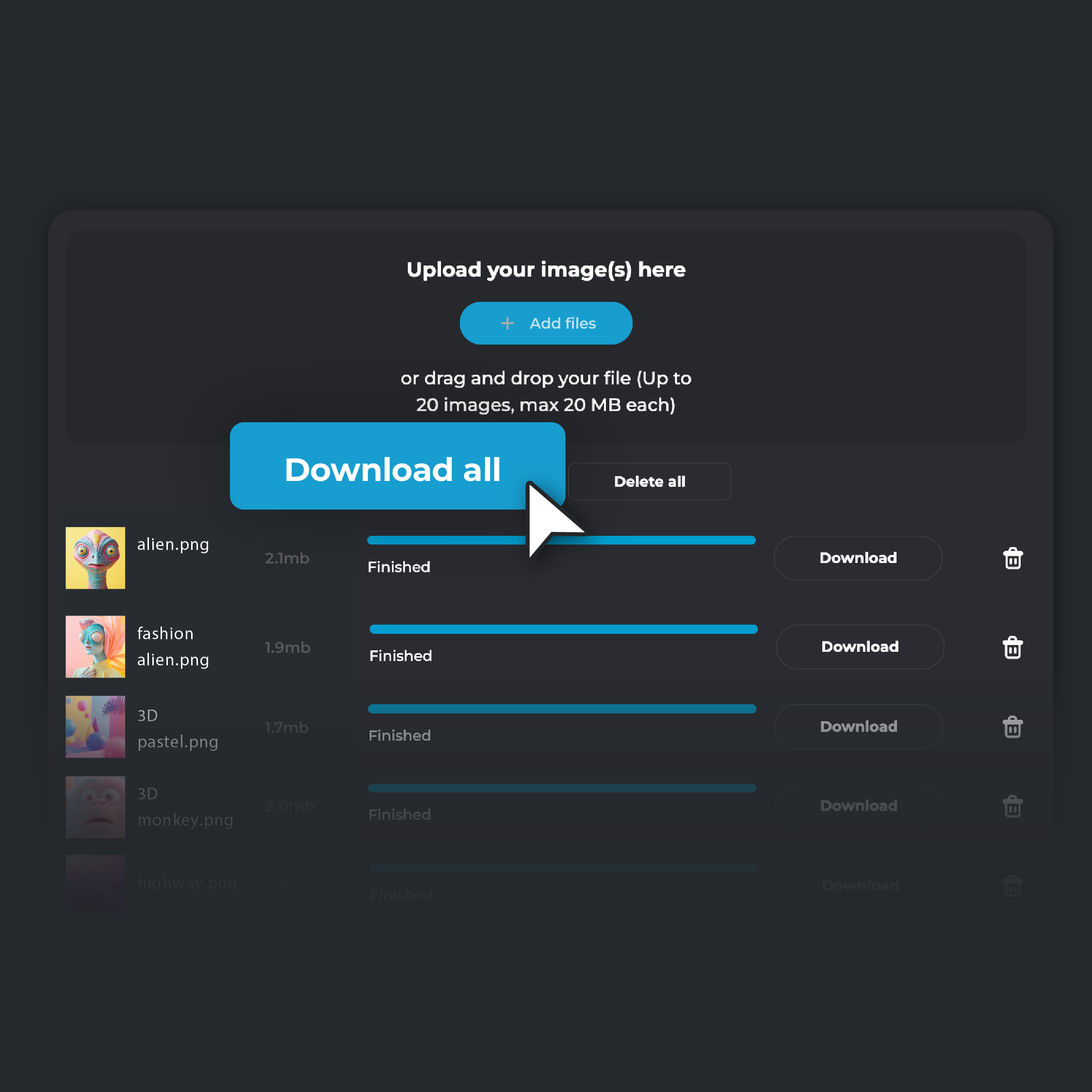or drag and drop your file (Up to 20 images, max 20 MB each)